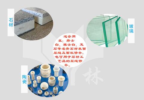可用于石材與石材、石材與玻璃的復(fù)合、石材工業(yè)中用來補強、填補具有多孔及表面的裂紋、小孔洞、砂眼、螞蟻路以及凸凹不平的多種天然石材和混凝土、提高表面質(zhì)量、也可用于玻璃紗網(wǎng)加強易碎石板,提高成品率。